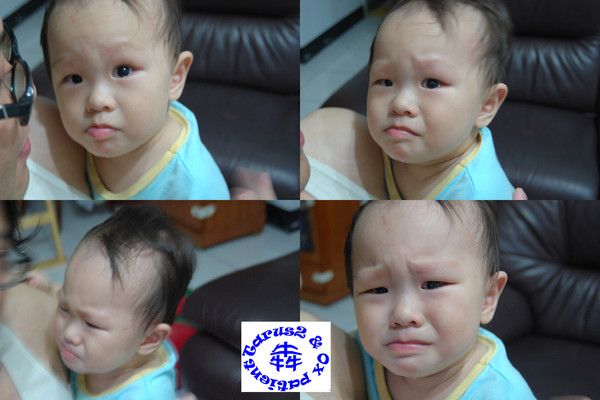 不知道小孩眼中的我們這些大人是什麼樣子,小海龜的大舅舅剪了個頭髮,沒有奇異造型,就只是修短而已,這小鬼看到就哭,不給抱。馬麻鼻子上敷個黑面膜要拔粉刺,這小鬼看到怕得要命,拼命往把拔身上鑽,還賞給馬麻扁嘴哭,敷個全臉面膜,這小鬼是整個嚇到跳起來。