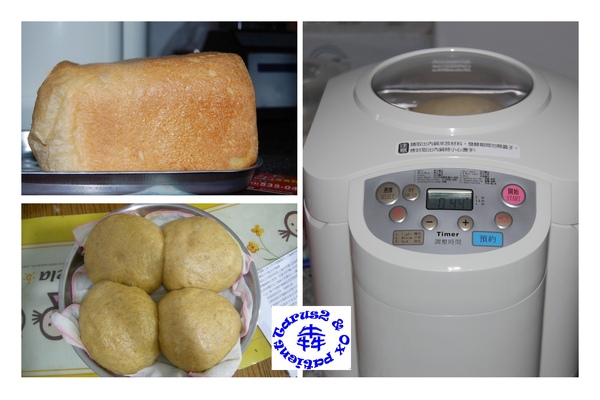 這個麵包機買來約2~3個月了吧!其實在去年就動了念頭想買麵包機,但是怕自己三分鐘的熱度,造成日後多了個大障礙物而放棄,但是前陣子的物價漲得不像樣,以前常去的那家麵包店的奶油吐司,半條價格從35元一路上漲到53元,我真的買不去下了。在購物台看到在賣這個,送的贈品還是製麵機,於是就定了一個。買來後做過3次吐司,做出來的吐司都有發糕的口感,上了早餐的好幫手看了許多前輩的意見,但是我資質駑鈍還是調不出沒有發糕口感的吐司,所以後來改利用它的攪拌麵糰的功能,改做饅頭去了,因為家裡沒有乾果類,所以就只包了辮子乳酪,做出來的饅頭外形雖然不好看,但是口感不賴,第二次依Carol 乳酪堅果饅頭的作法和配方,作了綜合堅果饅頭。