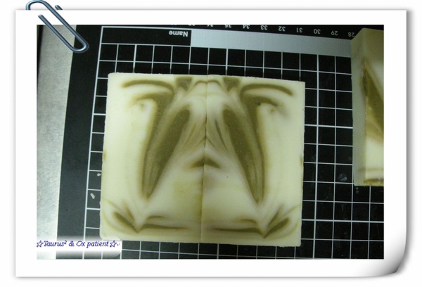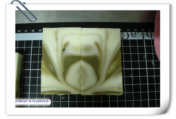 脫膜後應該再放個幾天再切皂會比較剛好, 切皂太早,所以有些沾黏。