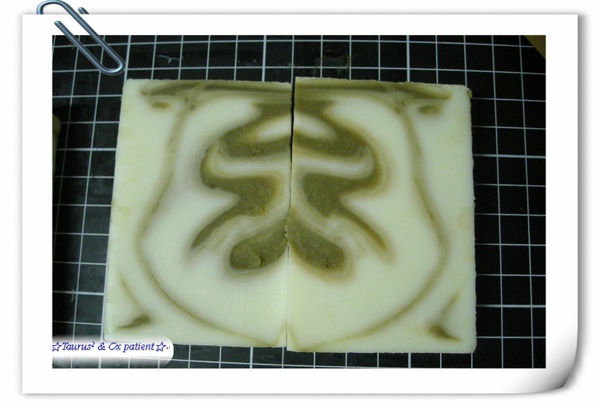 油的配方是花蓮姊的,水量是用自己習慣的量,用艾草粉做渲染。二段式做法,所以大約25分鐘左右就TRACE了。