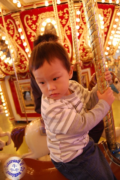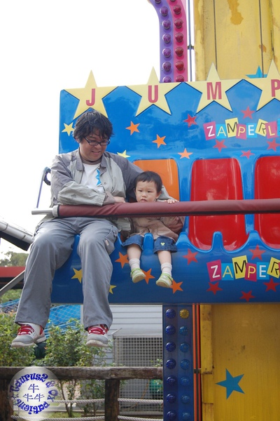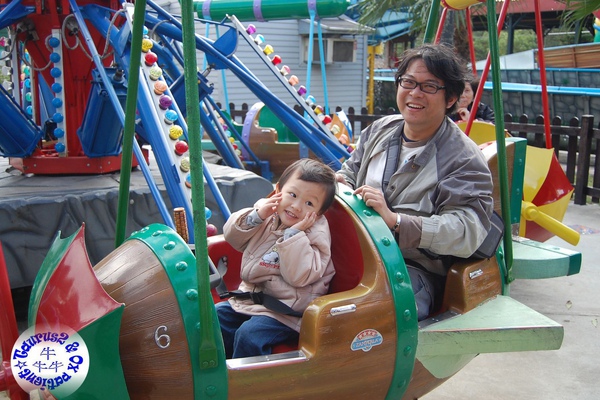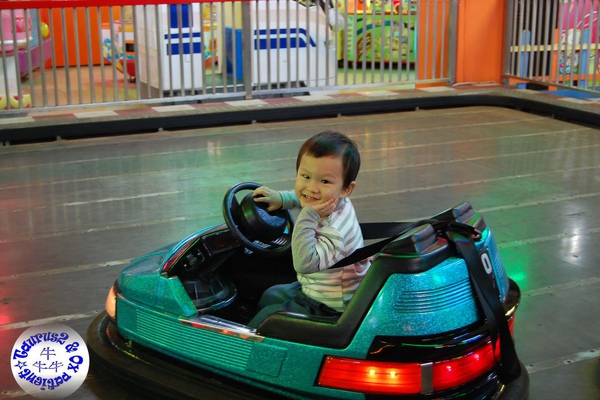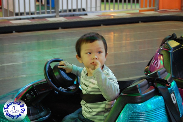 開車-因為大人禁止進入,所以小海龜自己開,顧得了腳踏油門就顧不了方向,不然就是顧方向盤忘了踩腳踏板,老爺說小海龜有90公分的身高,但是沒有90公分小孩的智力。老媽說和小海龜同齡的小孩身高哪有他這麼高的?(這心態根本跟癩痢頭還是自己的好沒兩樣),小海龜才二歲半,這個遊樂設施不能用身高來看,而應該以年齡來看。(其實小海龜的身高是兒童生長曲線50%那級)